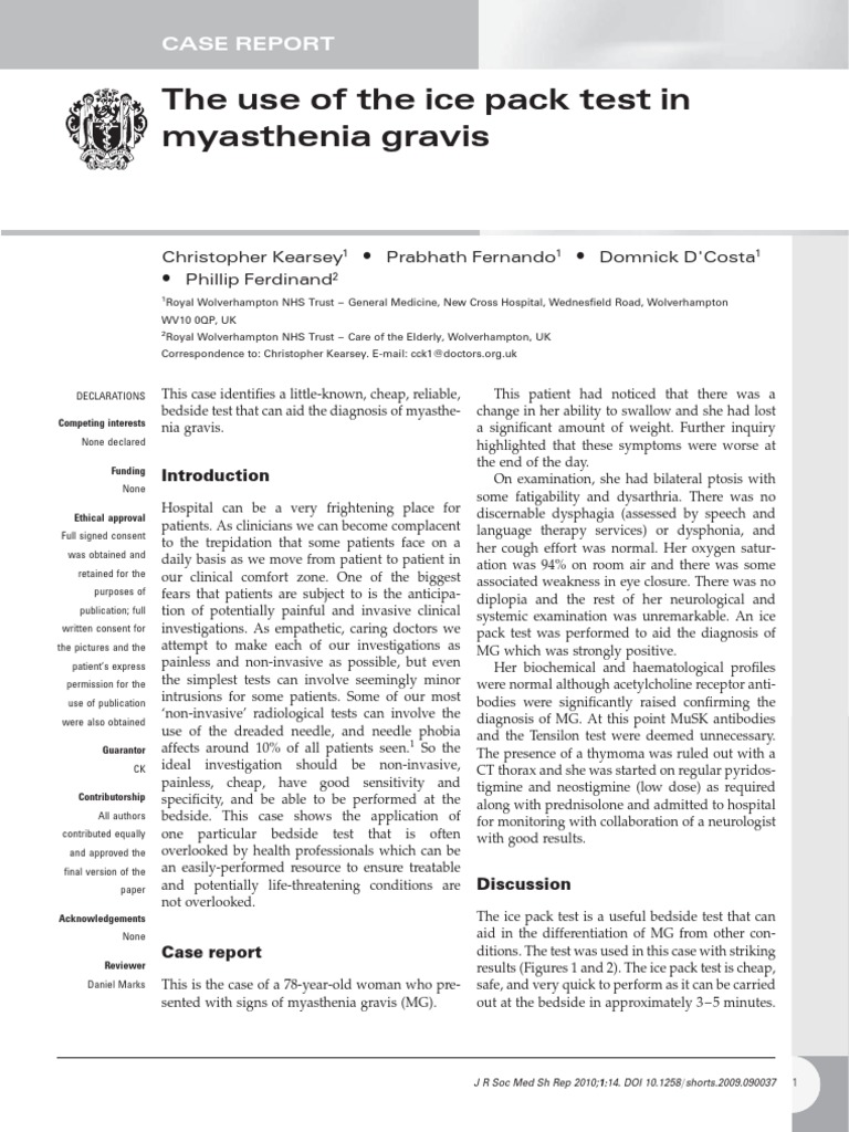(PDF) Ice pack test for myasthenia gravis Michael Rivner Academia.edu What Is The Ice Test For Myasthenia Gravis the ice pack test (ie, placing ice over the lid) has gained interest among ophthalmologists for assessing improvement in ptosis and diplopia in. the ice pack test is a useful bedside test that can aid in the differentiation of mg from other. It is quick and easy: ice pack test can be done by taking baseline eyelid. What Is The Ice Test For Myasthenia Gravis.